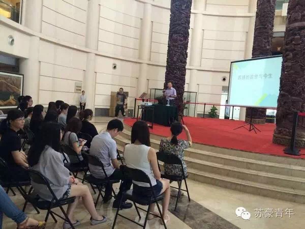 参观完馆藏珍品后,爱涛文化产业公司总经理助理、研究员级高级工艺美术师吕元先生为大家做了一场题为《苏绣的前世与今生》的艺术讲座。讲座在宏伟的木雕巨作“四大名柱”下开讲,吕元先生旁征博引,从中华民族的起源讲起,系统而细致地将苏绣这一民族传统工艺的前世今生讲得精彩透彻,获得了青年同事们的一致好评。