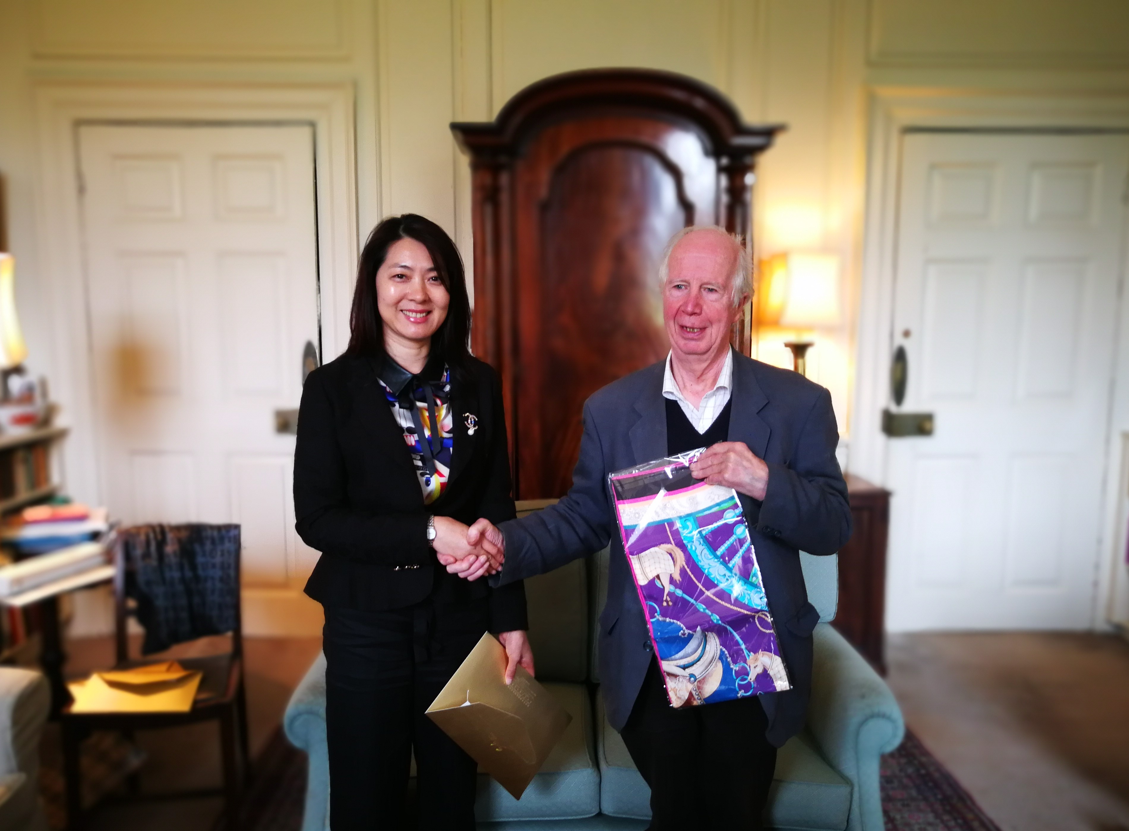 陈云梅向麦克法兰教授赠送礼物